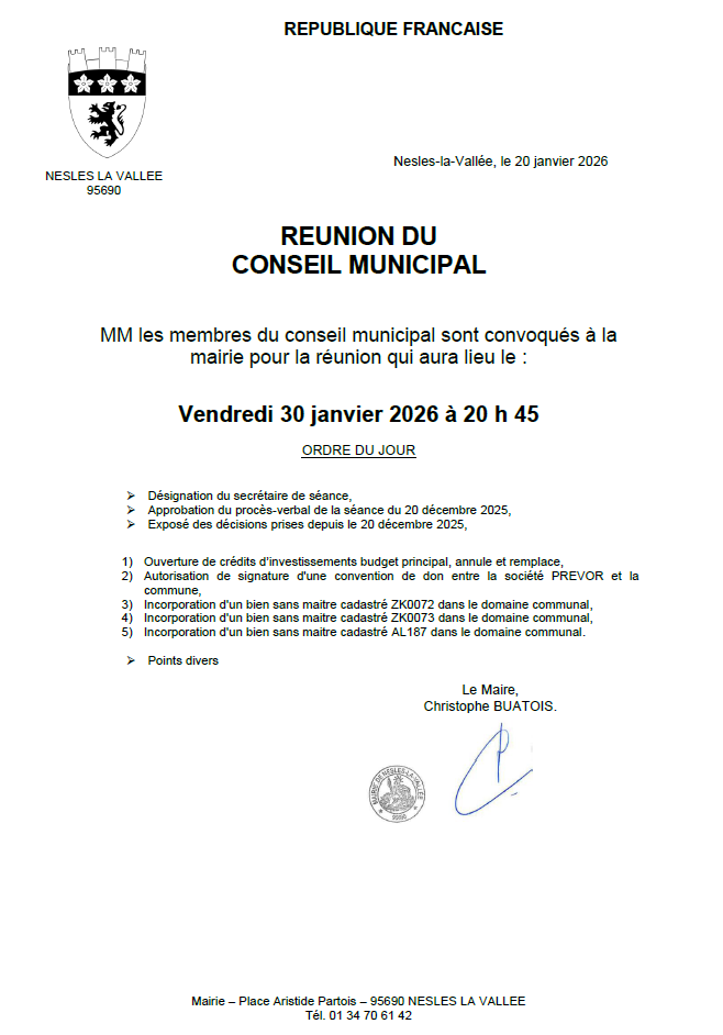Prochaine séance du conseil municipal le 30 janvier 2026